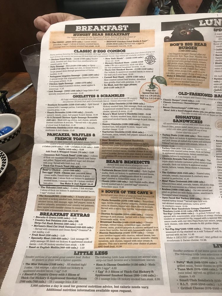 The menu showcases generous portions of comfort food, with highlights including their famed Bear's Choice breakfasts featuring decadent pancakes paired with savory sides. Diners rave about the crispy fish and chips, tender pot roast, and thick-cut French toast. Each dish strikes a balance of quality and quantity, ensuring satisfying meals for everyone.